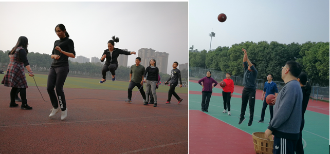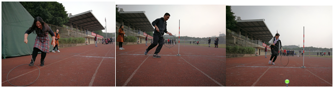 在精彩纷呈的武术与啦啦操表演后,教职工们开始了热身项目—集体广播体操,紧接着便是丰富有趣,紧张刺激的竞技比赛。本次运动会共设置“定点投掷”、“足球射门”、“滚铁环”、“跳长绳”、“定点投篮”五个项目,每个项目都融合了竞技性与趣味性,老师们跃跃欲试,各尽其能,同样将竞技体育精神彰显到极致。我工会的健儿们在优势项目“跳长绳”中超常发挥,大家用心专注,相互鼓励,以225个的优异成绩刷新了这一赛事的校纪录。