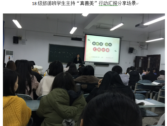 2018级《思想道德修养与法律基础》课程的“‘真善美’行动”实践活动12月初已全部结束。本次活动是要求员工以小组为单位完成的,从10月至12月初这段时间内,各班由思修课老师根据各班的教学进度适时安排员工具体活动时间段,活动由课外实践和课内分享两个部分组成。