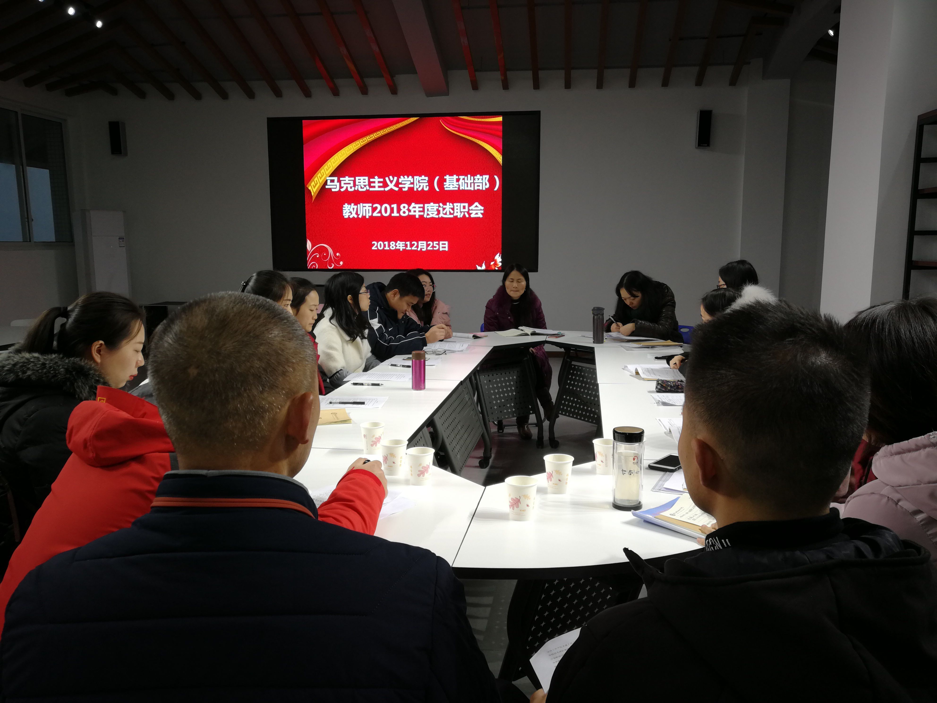 20181225日下午17:20在文华楼7楼会议室召开2018年度专任教师述职专题会议,会议由部门负责人许永莉同志主持,部门全体教职工参加了此次会议。