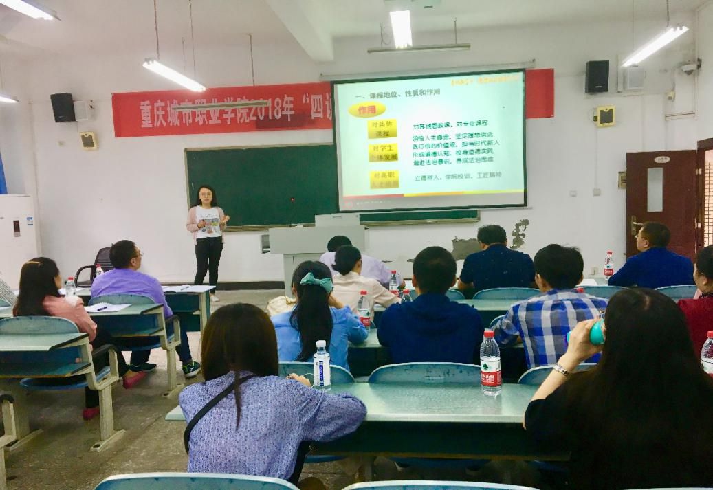 在比赛过程中,周欢老师对课程地位、性质和作用把握准确;通过文化基础、学习方式、学习能力、自我意识四个方面透彻入理地分析学情;教学设计板块,周欢老师从理论讲授、校内实践和校外实践三个方面介绍思想政治理论课的课程改革成效,并介绍了思政部全体教师积极拓展校内外实践项目和共建实践基地的前期成果。改革创新板块,周欢老师提到,在积极拓展校内外实践项目和基地的基础上,拓宽实践教学合作领域,如加快建设公司“梦想精神道路”思想政治教育多功能厅,涵盖中华优秀传统文化教育和革命文化教育功能,可对全院师生进行思想政治教育。