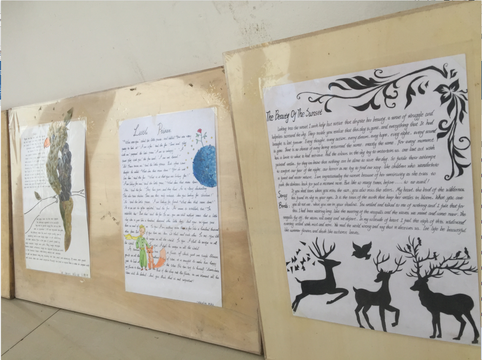 在同学们的精心设计下,英语书法作品主题鲜明,布局美观,设计新颖;从收集素材到书写也突出了员工的个性特点,给人一种美的享受。
