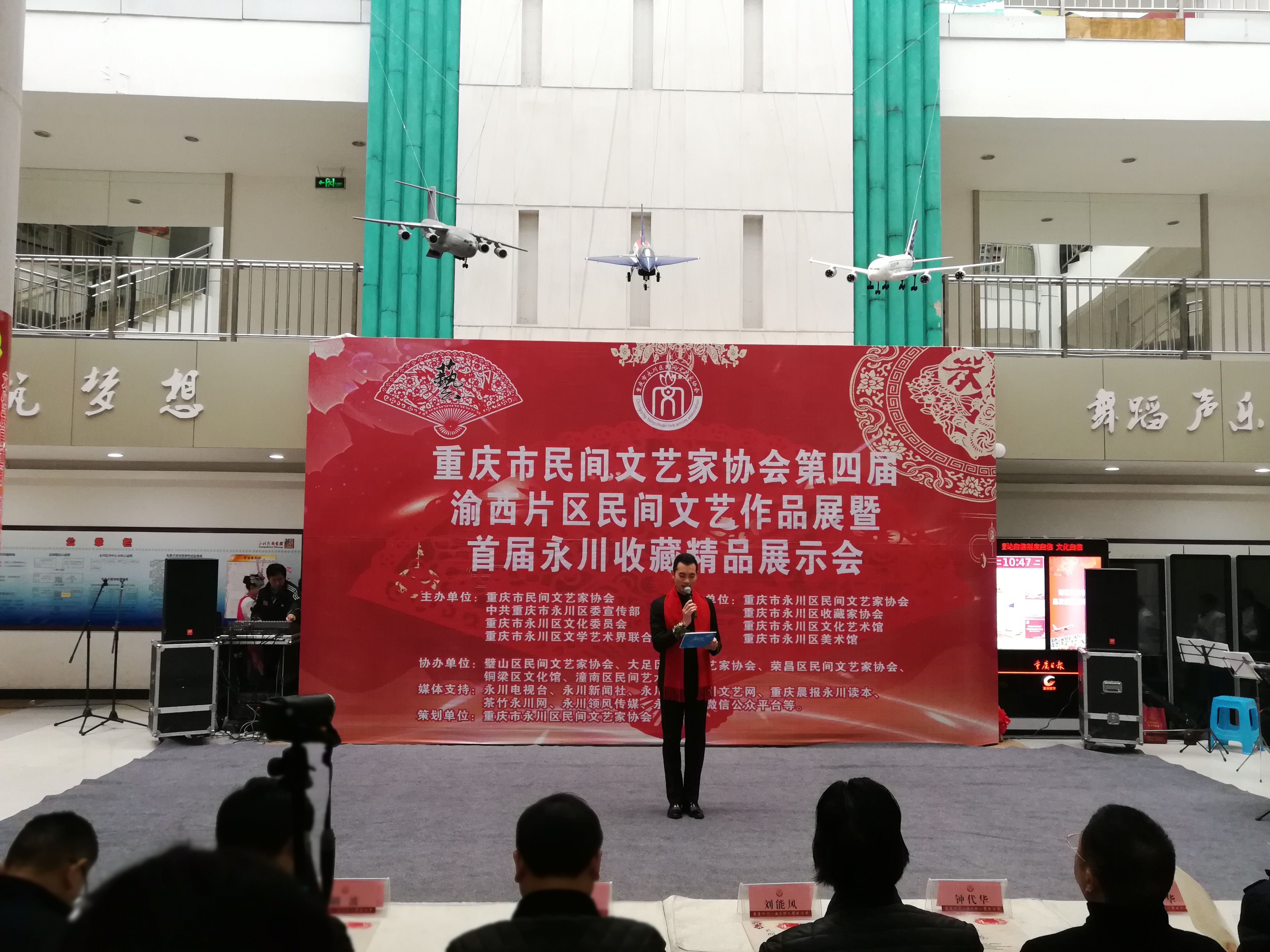 12月29日上午,由市民间文艺家协会、区委宣传部、区文化委员会、区文学艺术界联合会主办,区民间文艺家协会、区收藏家协会、区文化艺术馆、区美术馆承办,璧山区民间文艺家协会、大足区民间文艺家协会、荣昌区民间文艺家协会、铜梁区文化馆、潼南区民间文艺家协会协办的重庆市民间文艺家协会第四届渝西片区民间文艺作品展暨首届永川收藏精品展示会在区文化艺术中心启幕。