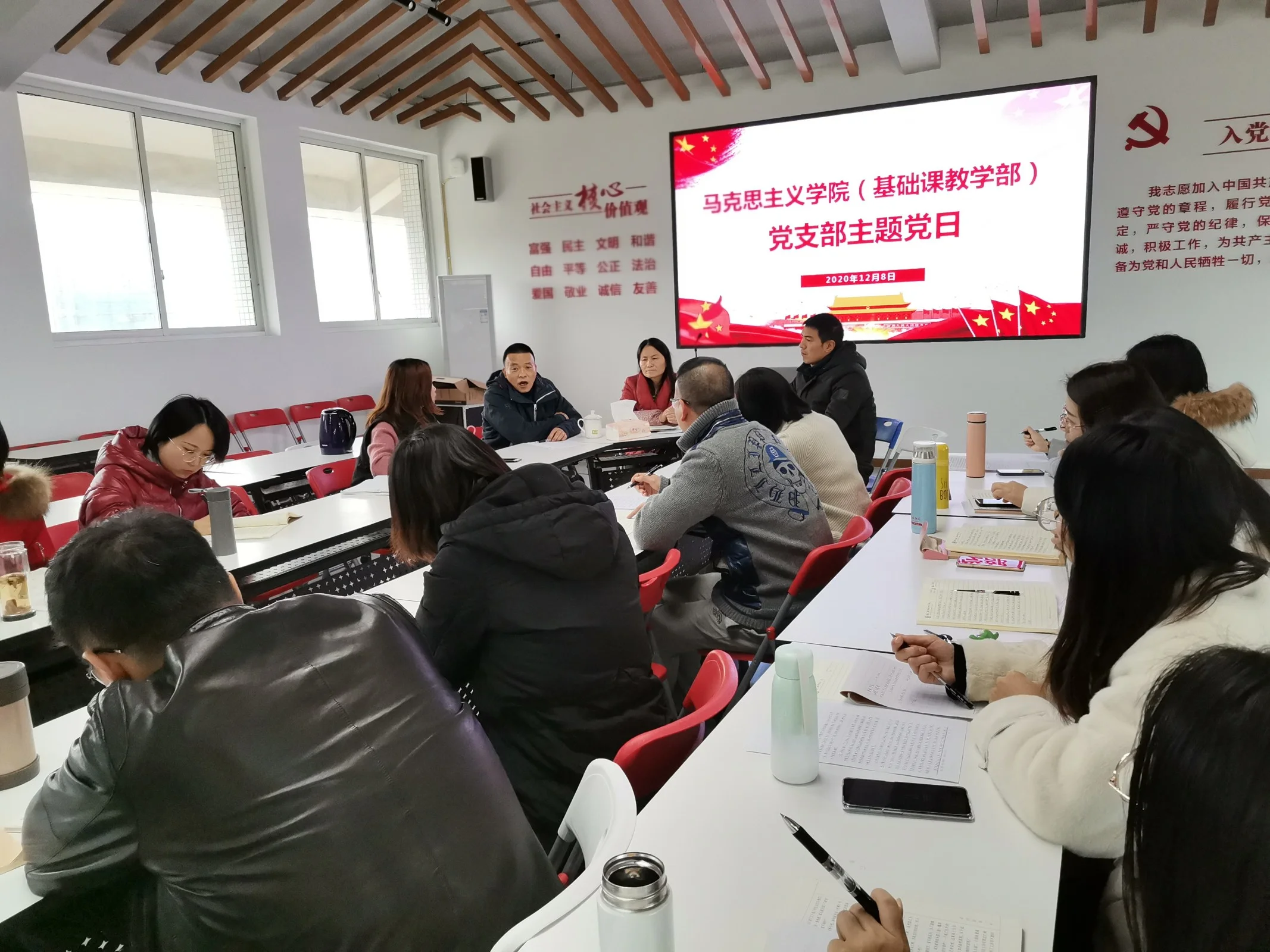 2020年12月8日下午14:30,马克思主义公司(基础课教学部)党支部在文华楼思想政治教育馆开展主题为“新时代谋发展,新征程强作为”的主题党日活动。活动由党支部书记许永莉同志主持,党委书记刘波同志以普通党员身份参会。